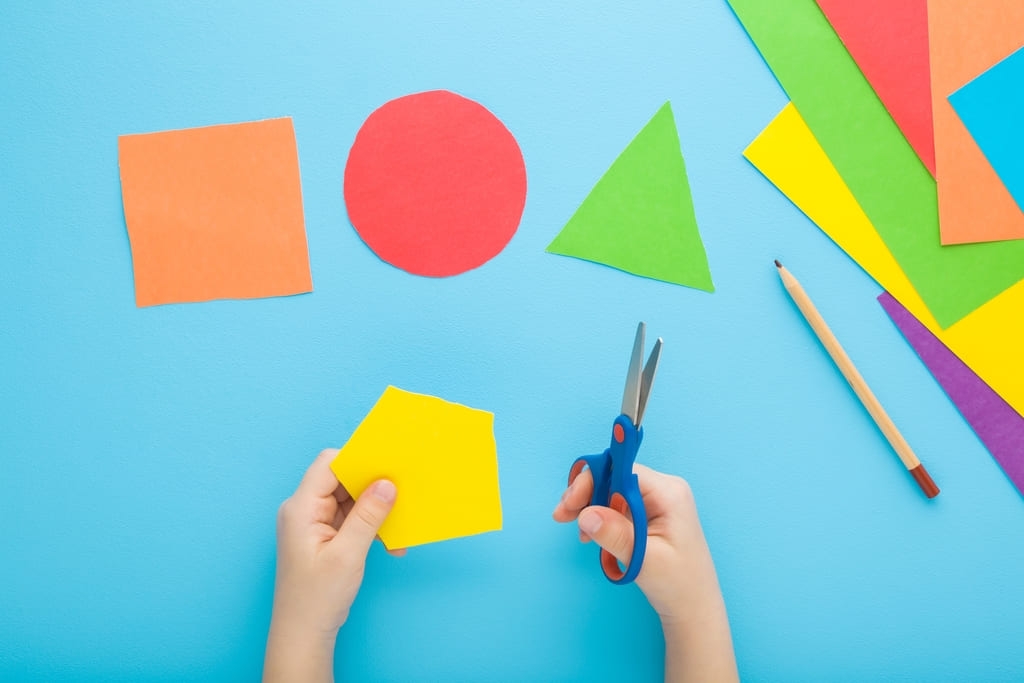 Вырезаем простые фигуры (квадрат, круг, треугольник). Это следующий этап, который требует большей координации. Начните с квадратов и прямоугольников, затем переходите к кругам и треугольникам. Начертите контуры на бумаге и предложите ребенку «вырезать фигуру». Помните, что идеальный результат не важен на этом этапе, главное — процесс и старания.